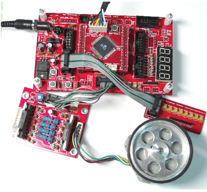 < KD-128PRO” を使用してステッピングモーター駆動モジュールを使用する写真 >