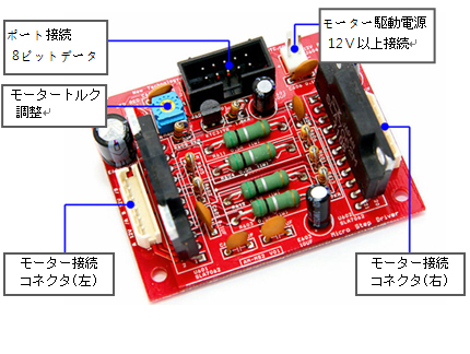 基本的な構造と動作方法、ソフトウェア的な具現方法は、ホームページから提供する“ライントレーサー講座 - 2 モーター駆動部”をご参考ください。
