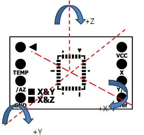 センサーの出力をADCで値をコンバーティングすると、該当の軸へ加わる角速度を知ることができます。角速度を時間に対して積分すると、各軸に該当する累積された角を知ることができます。しかし、ジャイロだけでは正確に絶対角度を調べることはできません。累積誤差が発生するためでありますが、その原因はセンサーに入る電源ノイズ、データに入ってくるノイズ、ADCをしながら生じる量子化ノイズ、そして、基準電圧の変更によるノイズなどがある場合があります。