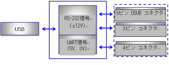 TTL Level (5V), RS-232C Level(±12V)信号の両方をサポート