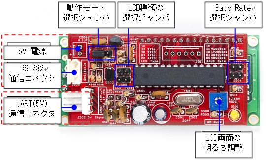 AM-SLCD420BL (Serial LCD 4*20モジュール) 使用例