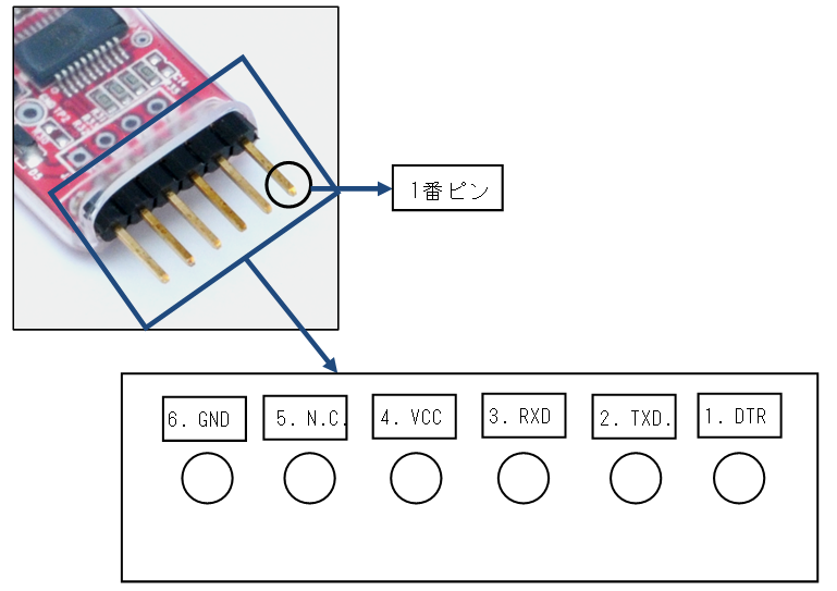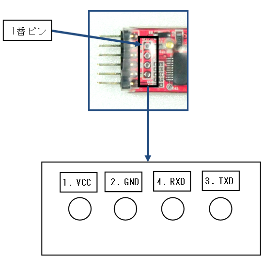 5ピン(DTR,RXD,TXD,VCC、連結なし、GND)インターフェースを使用します