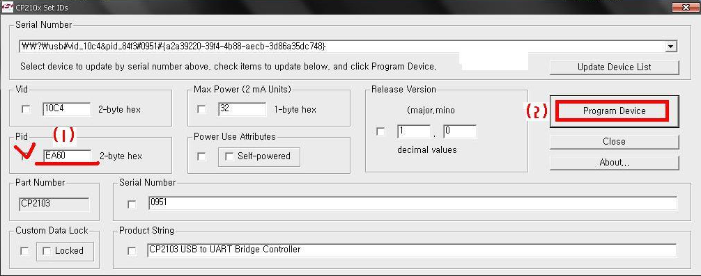 2) Insert USBISP to that driver installed PC, and please execute CP210xSetIDs.exe