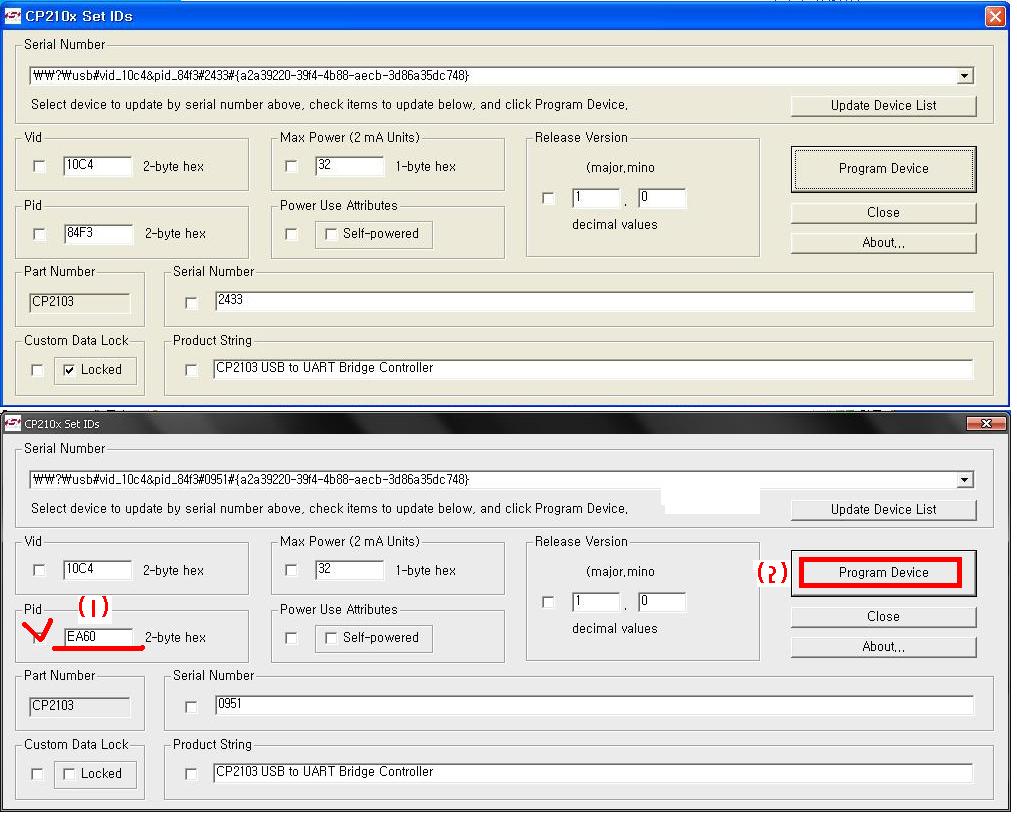 * PID変更には注意してください。 間違ったPID入力すると、そのチップは使用できなくなります。ありがとうございます。