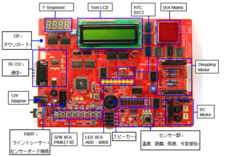 AVR ATMega128 MCUを使用するトレーニングキットです。