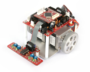 [DC모터(SE-DM)에 결합한 사진][라인트레이서에 적용한 사진]