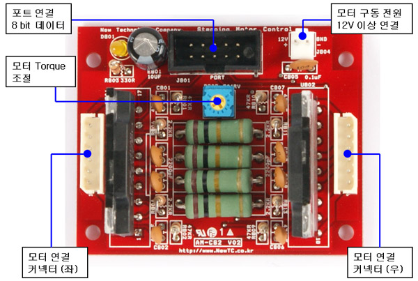 * 주의 1: 제작 목적은 교육용으로 제작된 제품으로 모터가 1A 이상 사용시 반드시 외부에 방열판을 장착하여 사용하여야 합니다.