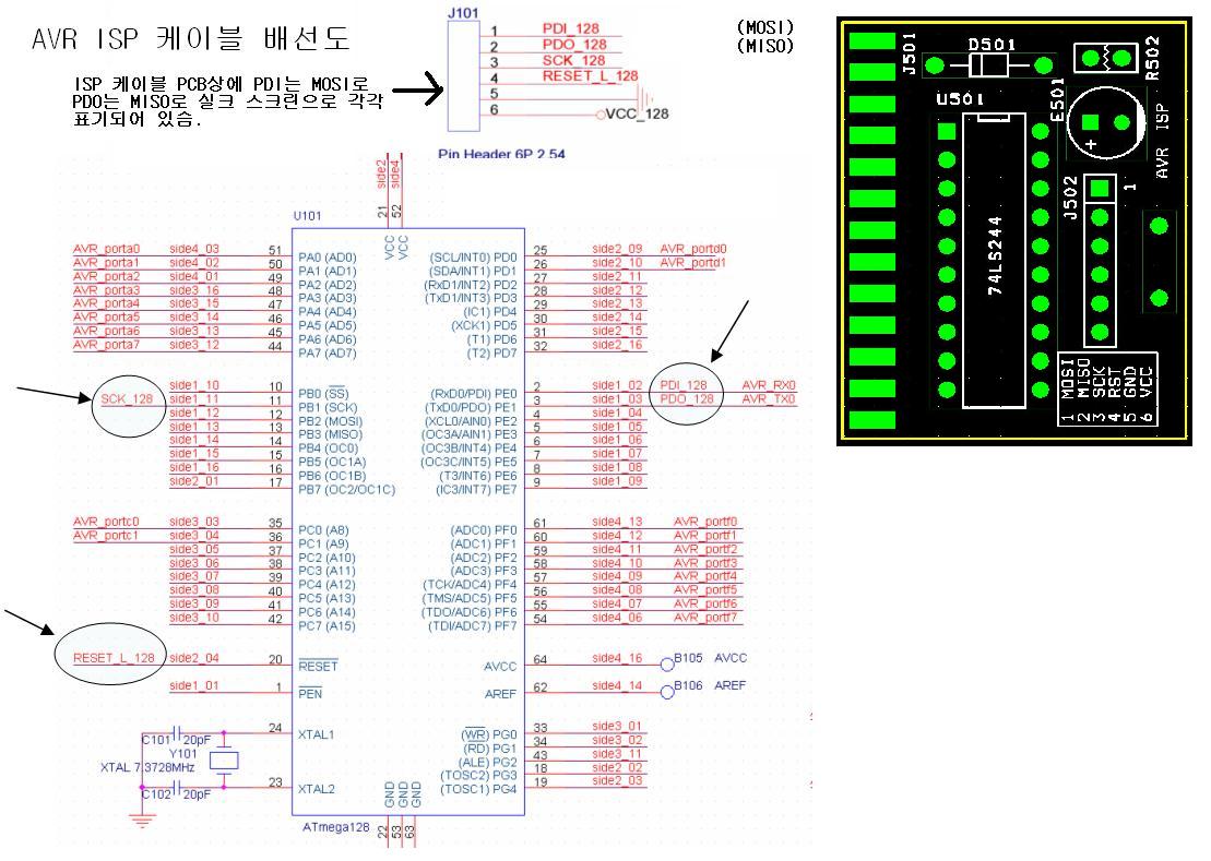 AVR MEGA 128 MCU 보드 핀번호 및 기능과 AVR ISP 케이블 보드 핀번호 입니다. 감사합니다. MEGA 128에 연결하실 떄의 결선도도 참고로 넣어 두었습니다. 감사합니다. 궁금하실 때는 언제든 질문 주세요. 늘 발전하시기를 바랍니다.