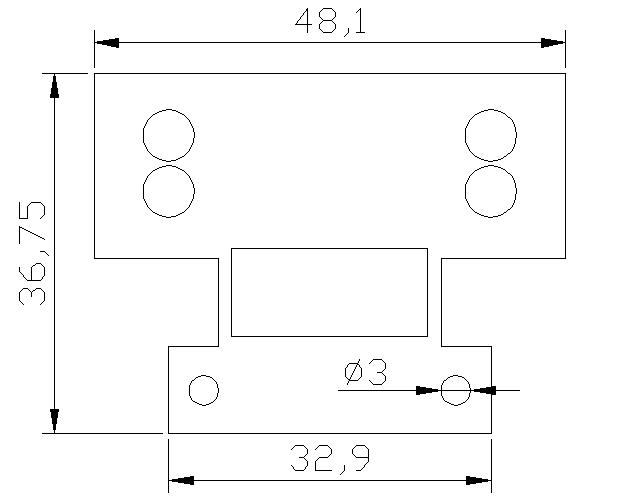 [기구도 AM-IRS] 적외선 센서모듈 기구도. 본 보드는 DC 라인트레이서의 바닥 선 감지 센서 모듈로 사용되었습니다.
