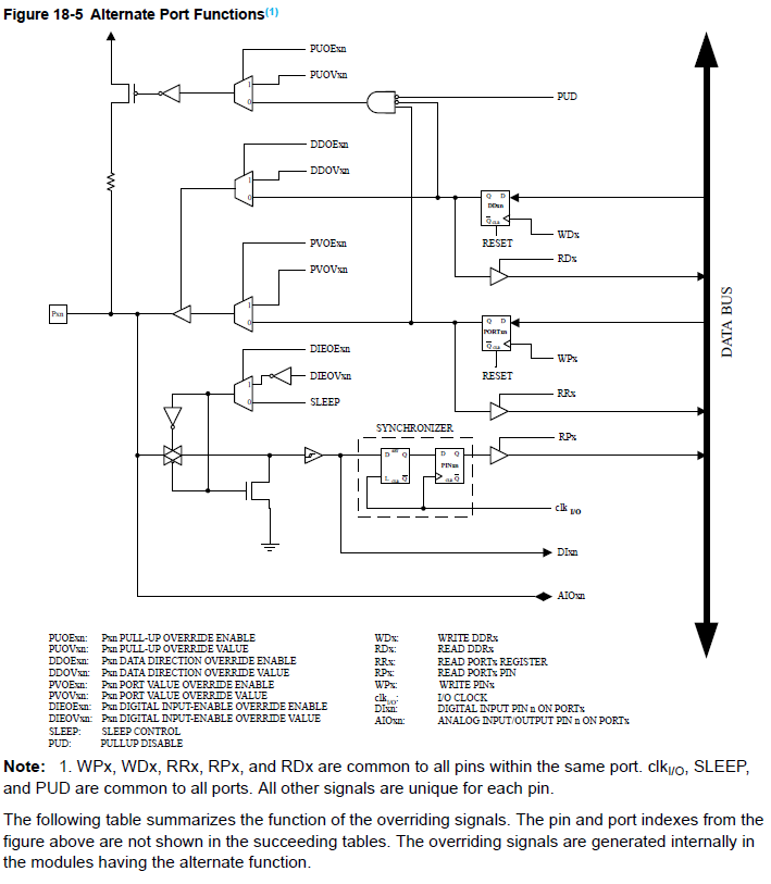 각 포트별 멀티핀 기능에 따라서, 조금씩 내부 회로가 다릅니다.