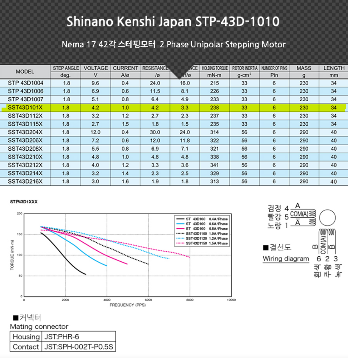 2. 모터제품명: 시나노겐시 42각 스테핑 모터 STP-43D1010