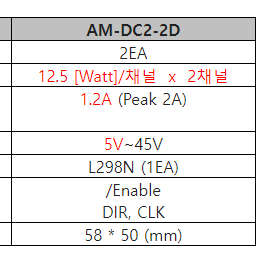 안녕하세요? 고객님, 저희 뉴티씨 제품을 이용하여 주셔서 감사합니다. IC가 제공하는 것은 최대 1.2A 이고, 순간 2A 입니다. 하지만, 방열판이 교육용이라 작게 나와서 최대 1A 정도까지만 견딜 수 있습니다. 순간 2A는 영점 몇 초 같은 정말 순간만 가능합니다. 감사합니다. > > > 안녕하세요. > AM-DC2-2D의 한 채널당 출력 전류는 얼마인가요? >
