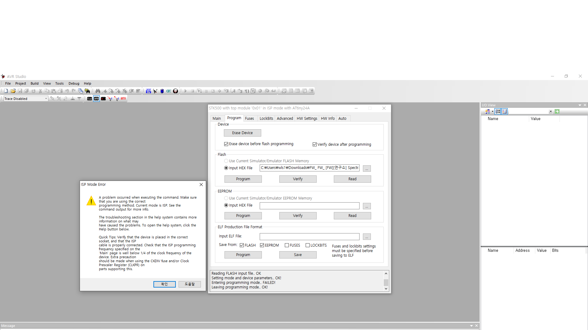 (4) 동일한 환경(케이블 포함)에서 ISP를 기존 쓰던 AD-USBISP V3.6으로 교체해서 사용해도 똑같은 문제 발생.