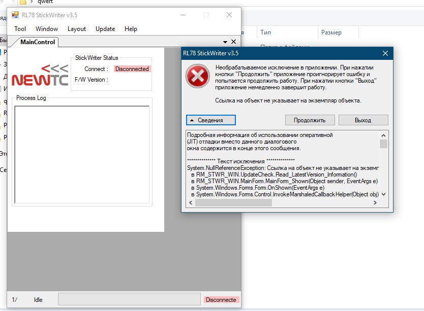 RMS-STWR (RL78 StickWriter v3.5) 실행시 오류 발생건.