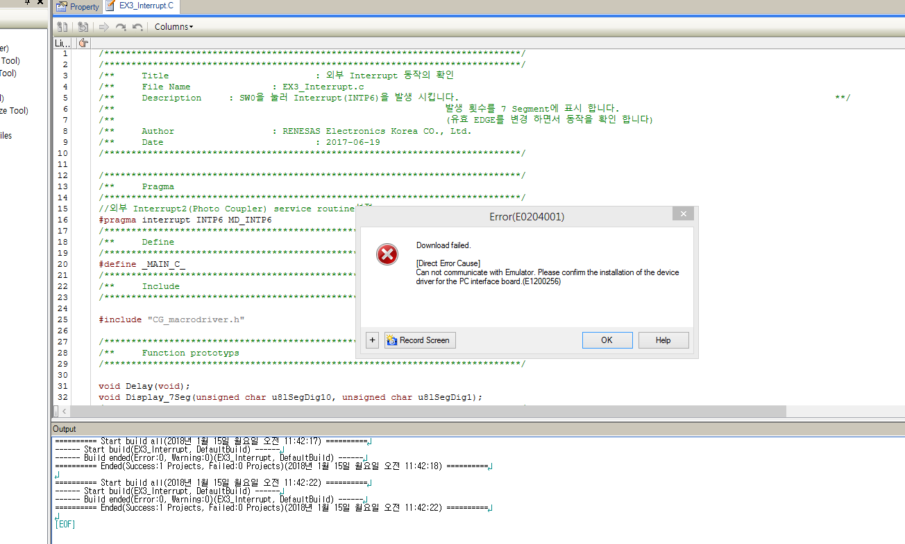 안녕하세요. 수고 하십니다 제가 이번에 르네사스에서 RL78/G13 Board와 debugger tool을 무상으로 받았습니다. 그런데... 현재 제가 받은 제품이 디버거에서 어떤 제품 인지를 문의 하고 싶습니다. 디버거 사진과 Error Message를 첨부 하였습니다. 답변 부탁 합니다
