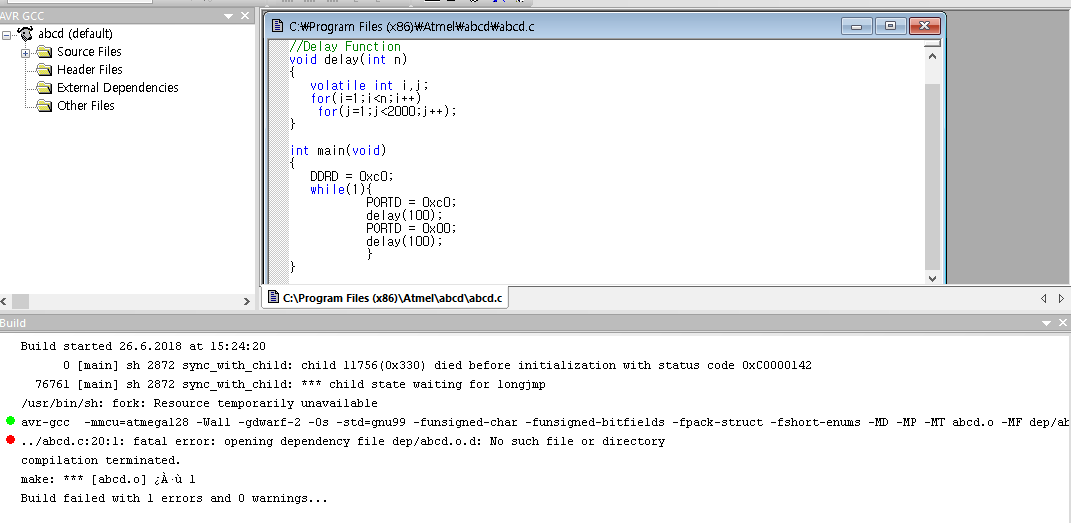 AVR STUDIO 컴파일 오류 질문이에요